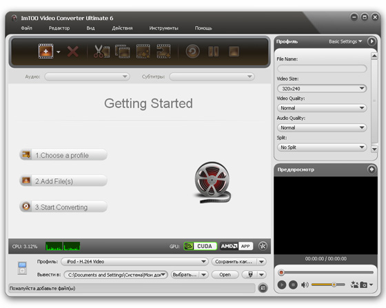 ImTOO Video Converter - является простой в использовании программой, которая позволяет редактировать и конвертировать видео, аудио и анимированные изображения. Это полный видео конвертор, является лучшим видео конвертором для преобразования видео HD: H.264/MPEG-4 AVC, AVCHD (*. m2ts, *. МТС), MKV, WMV HD, TS HD MPEG2/MPEG-4. Может конвертировать видео из HD в SD, конвертировать различные общие форматы видео: AVI, MPEG-4, WMV, DivX, H.264/AVC, и извлекать аудио и изображений из видео. Даже создать видео из фотографий далее с гибкими функциями слияния/обрезания/редактирования/разделения.