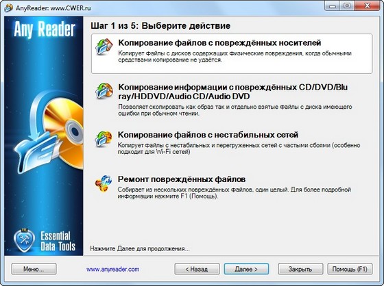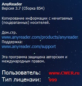 Часто необходимо считать данные с поврежденных "флешэк", дискет, поцарапанных DVD/CD-дисков, ненадежных сетей LAN (Wi-Fi). Обычными средствами это будет сделать, скорее всего, невозможно. Для таких случаев и существует программа AnyReader, которая выручит вас в подобной ситуации и легко прочитает, казалось бы, уже потерянную ценную информацию с любых носителей, которые доступны как буква диска в операционной системе Windows. Продолжение чтения (копирования) данных после возникающих ошибок или потери соединения в сети является уникальной возможностью программы AnyReader.
