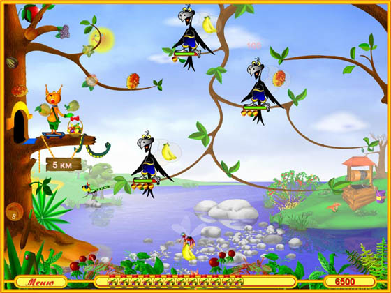 В этой яркой аркаде вам надо помогать симпатичному герою – бельчонку Сэму – попасть на именины его друга. Но не думайте, что это будет просто безопасная прогулка. Маршрут через лес труден и опасен. На пути вам встретятся стаи голодных ворон, они не пропустят вас дальше, пока вы их не накормите. Манипулируя комариком, ловите плоды, которые кидает бельчонок, и кидайте их птицам. Но старайтесь быть внимательны: птицы очень капризны и не будут брать фрукты, которые им не нужны. А так же следует успеть накормить всех ворон, пока светило не уйдет за горизонт.