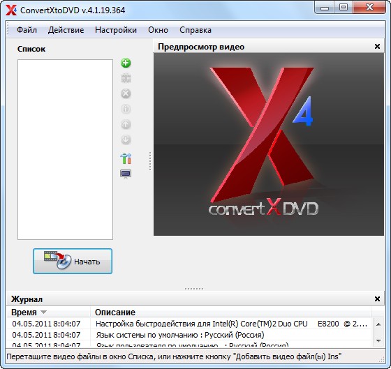 Программа обладает всеми функция, которые потребуются при конвертации обычных видеофайлов в DVD: