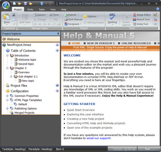 Help & Manual - удобный инструмент, упрощающий создание справочных файлов Windows, печать справочных руководств и документации в целом. Программа имеет простой и удобный в работе интерфейс. Все созданные проекты можно сохранить в различных форматах: HTML Help, Winhelp и MS Help 2.0 / Visual Studio Help, Browser-based Help, PDF и Word RTF, а также печатной документации при использовании одного и того же проекта. Help & Manual объединяет в основном окне оглавление (в виде древовидного списка) и текстовый редактор. Это позволяет легко ориентироваться в оглавлении, редактировать или перемещать разделы справки без большой суеты. Кроме этого, программа позволяет конвертировать help-файлы из одного формата в другой. Помимо программ для работы с текстом в Help & Manual включены утилиты для создания скриншотов и редактирования графических файлов.