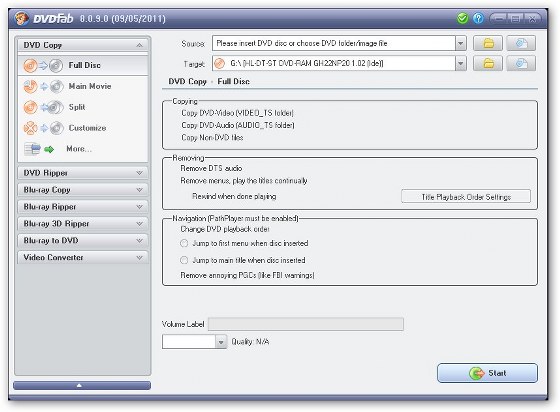 - Full Disc: All movies, menus and trailers, is copied to a DVD with just one click