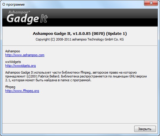 Скачать программу Ashampoo Gadge It 1.0.0 Final (38,53 МБ):
