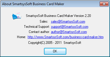 SmartsysSoft Business Card Maker программа для легкого и быстрого изготовления визиток. Вся работа проходит при помощи "мастера", упрощающего процесс создания визитки. Встроенные в программу инструменты позволяют создать профессионально выполненные визитки самых разнообразных размеров и стилей оформления, поддерживается совместная работа со сканером, для упрощения изготовления визиток работникам предприятия допускается создание внутренней базы данных.