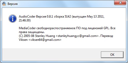 Скачать программу AudioCoder 0.8.1 Build 5142 (11,57 МБ):