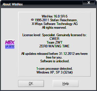 Скачать программу WinHex 16.0 SR-5 (1,9 МБ):
