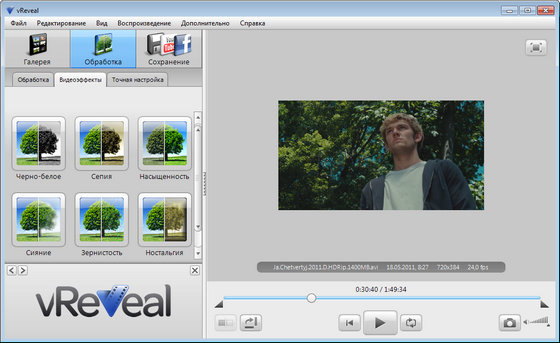 Программный продукт vReveal разработан специально для того, чтобы снять напряжение с глаз любителей видео, которое не всегда можно просматривать в самом качественном виде. С помощью vReveal можно добиться хорошего качества даже от "безнадежных" видеороликов, скачанных из сети с помехами, или DVD дисков с пиратской записью. Программа не требует большого опыта и пользовательских навыков. Обработка видео плохого качества в vReveal происходит в автоматическом режиме по предварительным пользовательским настройкам, вводить которые советует, кстати, сама программа.