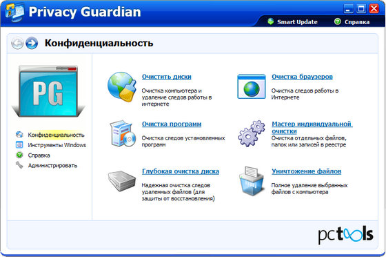 Privacy Guardian - надежное и удобное средство защиты конфиденциальной информации, которое удаляет следы присутствия в Интернете и записи, регистрирующие работу программ, которые хранятся в браузере и других скрытых файлах компьютера без возможности их восстановления. Позволяет легко и надежно удалить конфиденциальные файлы из Windows, Microsoft Office, Windows Media Player, Mozilla Firefox, Google Chrome, Opera и Internet Explorer.
