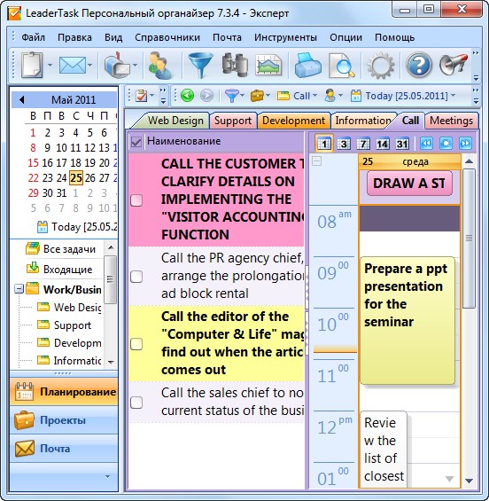 - Составление плана работы на день. LeaderTask поможет создать почасовое расписание задача на день.