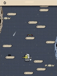 Обновлённая версия забавной аркады про прыгающего человечка. От старой игры отличается наличием выбора цвета фона, новыми уровнями. А так же добавлены новые бонусы. Целью этой затягивающей, практически бесконечной, аркады, является поднятие героя как можно выше вверх. Для этого придётся прыгать по платформам, подбирать ракетные ранцы и прочие бонусы, а также отстреливаться от разнообразных противников. В качестве врагов выступают милые и неуклюжие монстры, летучие мыши и НЛО. Также заметно усложняют игру хрупкие платформы, соприкосновение с которыми грозит падением вниз. Размеры экранов: 176x208, 240x320, 240x400, 240x432, 320x240, 360x640.