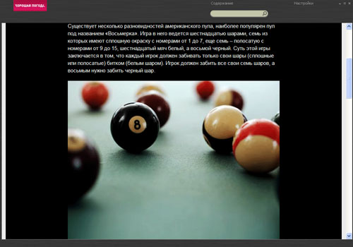 В разделе «Отдыхаем» пользователь почерпнет массу полезной информации, которая касается боулинга, дартса, стритрейсинга, дайвинга, горного велосипеда и других видов активного отдыха. Отдельные разделы посвящены игре в бильярд, рыбалке и охоте. Читатель узнает, как правильно расслабиться в бане, посетить солярий, как выбирать спиртные напитки и готовить коктейли.