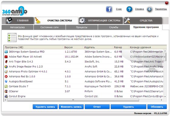 Думаете, что Ваш ПК слишком медленный? 360Amigo System Speedup может быстро вычислить и исправить широкий спектр ошибок и ускорит работу Вашего медленного ПК. 360Amigo System Speedup определяет и удаляет на Вашем компьютере все неиспользуемые файлы, оставшиеся от неправильной установки / удаления программ, он оптимизирует Ваш Windows, тем самым ускоряя время запуска системы. Кроме того, эта программа препятствует запуску вредоносных процессов на Вашем ПК. Также, она удаляет следы Вашей он-лайн активности, а именно историю просмотра, cookie-файлы, временные файлы, журнал регистраций, неверные ссылки и многое другое. Но самое главное в этой программе это то, что она мало весит, невероятно быстра и действенна (обычно её прогон занимает менее минуты). 360Amigo System Speedup выжмет максимум из Вашего ПК и сделает его снова как новым. Доступными функциями и возможностями этой программы смогут наслаждаться как новички, так и опытные пользователи.