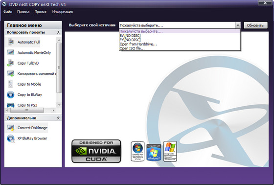 DVD neXt COPY neXt Tech - программа для копирования DVD. Программа позволяет делать резервные копии DVD фильмов. Предпросмотр трэков перед и во время копирования, поддержка однослойных и двухслойных дисков, мультиканального звука (Dolby digital 5.1, dts), поддержка NTSC и PAL DVD фильмов, делают эту программу одной из лучших в своём классе.