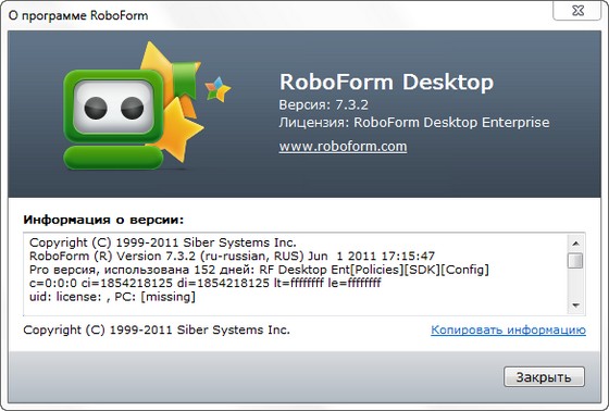 Скачать программу AI RoboForm Enterprise 7.3.2 Final (7,36 МБ):