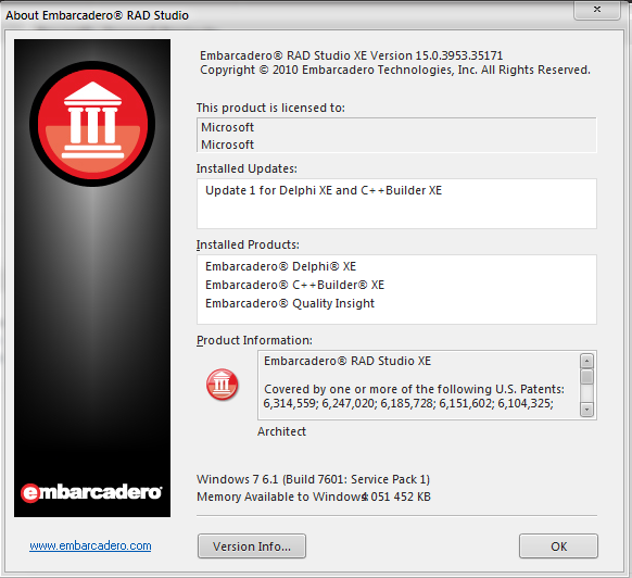 Версия: RAD Studio XE 15.0.3953.35171, Delphi Prism XE 4.0.25.791, RadPHP XE 3.0.0.1319