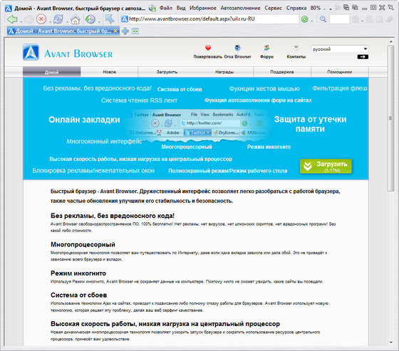 Скачать программу Avant Browser 2011 Build 21 Final (3,31 МБ):