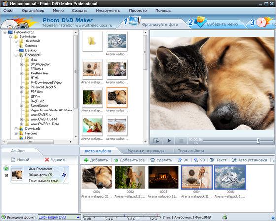 Photo DVD Maker Pro - является мощным и удобным в работе приложением для создания ошеломляющих слайд-шоу. Являетесь ли вы экспертом или новичком, это не имеет значения, программа проста и удобна в обращении. Особенности: создание непрерывного слайдшоу из фотографий или видео роликов неограниченного количества, наложение и соединение со звуковыми файлами (фоновая музыка), текстами, создание титров и субтитров, наложение эффектов перехода с выбором из более 360 эффекта перехода, создание проекта и прожиг в DVD, VCD или SVCD форматах для последующего просмотра на любом домашнем проигрывателе, iPod, Sony PSP, или сотовом телефоне.