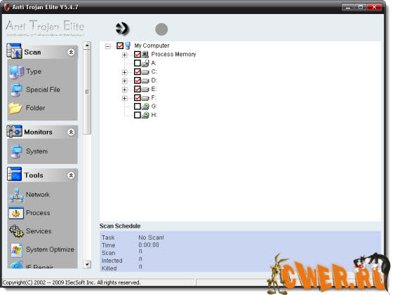 Anti-Trojan Elite - программа для очистки компьютера от вредоносных файлов, таких как трояны, кейлогеры и прочих. Anti-Trojan сканирует не только жесткий диск (включая архивы ZIP CAB), но и смотрит на то, какие процессы запущены. Также располагает менеджером сетевых процессов, при помощи которого можно определить, где запущен нежелательный процесс. Кроме этого, вы можете просмотреть ключи и значения реестра и удалить подозрительные, починить Internet Explorer, оптимизировать работу Windows и многое другое.