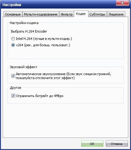 Ориентация сразу на 2 направления: Видео для ПК и различных портативных устройств. На выходе можно получить формат avi, mp4, 3gp, wmv, ogm, flv, swf, bgm, mp3. Специальная заточка конвертера для H.264 кодека, в частности очень радует наличие формата h264/aac для контейнера flv, так как пока такая возможность встречается редко на рынке продуктов, которая обеспечивает высочайшее качество для социальных видео-сервисов. Также в программе очень гибкие настройки и удобный интерфейс, например можно выбрать сегмент для кодирования, применить фильтры для видео, и также редкая возможность - применить DSP Audio эффекты от плагинов WinAmp. Удобное управление предустановками, богатые опции для субтитров, которые можно закодировать прямо в видеопоток, добавка своего логотипа, изменение скорости воспроизведения и синхронизации, отключение/включение выборочных декодеров и другие умные качества делают этот продукт очень достойным среди большинства конкурентов. Также важной и редкой возможностью среди перекодировщиков следует отметить высококачественный звуковой нормалайзер, который нормализует амплитуду звука и видео уже можно комфортно будет смотреть на бытовом DVD или мобильнике - где тихому источнику мощности не прибавишь.