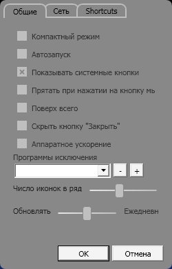 Все иконки разрешается перемещать, подстраивая при необходимости ширину панели в опциях. Из небольших недостатков отметим отсутствие сепараторов, которые были бы во многих случаях удобнее табов и точно так же позволяли бы разделять программы по категориям.
