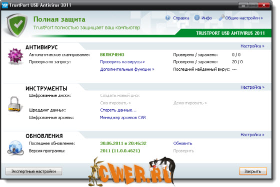 Скачать программу TrustPort USB Antivirus 2011 v11.0.0.4621 Final (90,4 МБ):