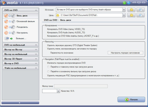 - Разделение по своему определению:копировать один DVD-9 на два DVD-5 спопобом разделения по своему определению.Это устраивает DVD фильмы и телесериалы, которые имеют много глав/сезонов.