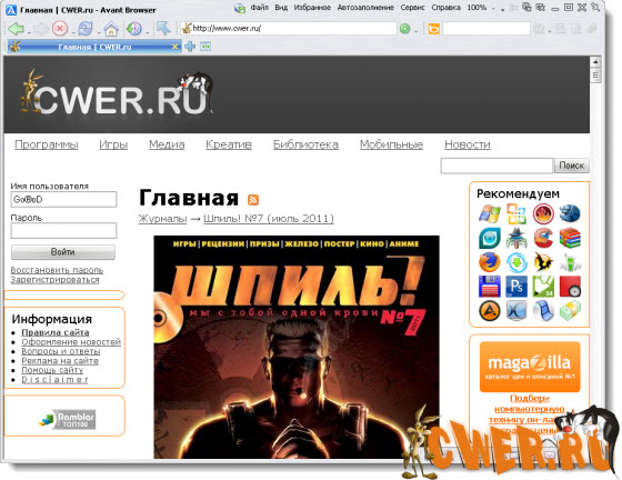 Скачать программу Portable Avant Browser 2011 Build 27 (9,76 МБ):