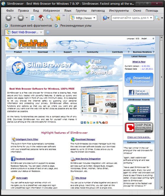 Скачать программу SlimBrowser 6.00 Build 036 Final (3,04 МБ):