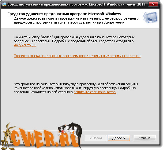 Microsoft Malicious Software Removal Tool - утилита для обнаружения и удаления наиболее распространённых вирусов. Microsoft Malicious Software Removal Tool выполняет проверку компьютера на наличие наиболее распространенных вредоносных программ (включая Blaster, Sasser и Mydoom) и удаляет их в случае обнаружения. Поскольку компьютеры, будучи зараженными, на первый взгляд могут работать нормально, специалисты из Microsoft рекомендуют запустить данное средство даже, если вам кажется, что с компьютером все в порядке. Утилита не требует инсталляции. С её помощью сканирование системы на наличие вирусов занимает всего несколько секунд. Из дополнительных опций можно отметить предоставление детальной информации о том или ином вирусе, распознаваемом утилитой (для этого нужно кликнуть мышкой на название вируса и перейти на сайт Microsoft с информацией о нём).