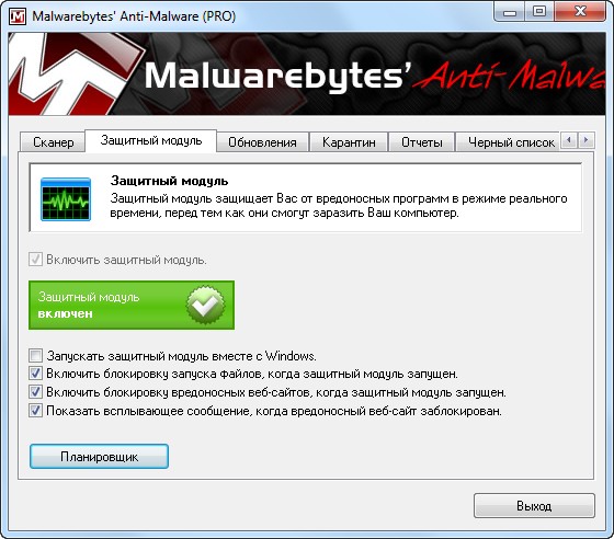Malwarebytes' Anti-Malware - новая версия программы от создателей RogueRemover Pro, AboutBuster и других популярных утилит, способная находить и удалять разнообразные вредоносные программы. Программой используется эвристический метод сканирования, позволяющий в реальном времени контролировать безопасность всей системы. Также имеется возможность полного сканирования всех дисков. Помимо этого, в состав данной программы входят дополнительные утилиты, предназначенные для удаления вредоносных программ вручную. Обладает понятным пользовательским интерфейсом с многоязычной поддержкой, включая поддержку русского языка.