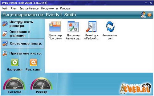 jv16 PowerTools позволяет проводить автоматическую очистку реестра от старых и ненужных данных, исправлять многие виды ошибок в реестре, удалять данные о уже не существующем ПО, удалять временные и повторяющиеся файлы и др.