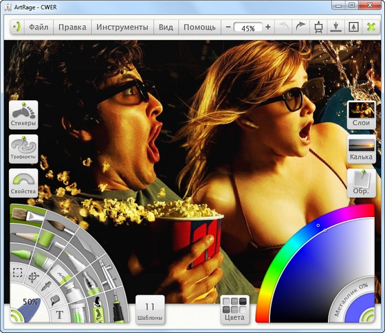 ArtRage Studio - пакет для живописи, предназначенный для того, чтобы обеспечить реалистичные результаты, используя методы рисования на холсте различными инструментами, такими например как ручки, карандаши и мелки. Вы можете работать с программой, используя в своих интересах преимущества уникального взаимодействия пера и экрана, что дает возможность ощутить реалистичность живописи.