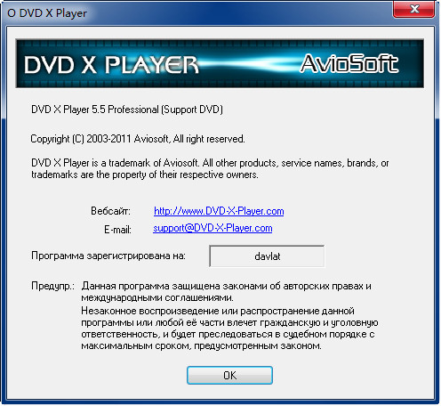 DVD X Player - плеер с встроенной функцией обхода региональной защиты, позволяет просматривать любые DVD диски с любым региональным кодом. Обходит RPC1/RPC2 Region Free, RCE Disc Region Free, Macrovision Free и Operation Free региональную защиту, пропуск FBI warning предупреждений. Имеет русский интерфейс.