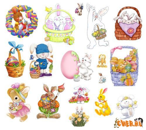 Красивый клипарт к Пасхе с яйцами и зайчиками