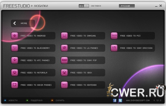 С помощью этого бесплатного программного обеспечения вы сможете конвертировать видео и аудио файлы в различные форматы для iPod, PSP, iPhone, BlackBerry и других мобильных устройств; записывать и копировать DVD и CD диски; загружать и скачивать видео и музыку на ваш компьютер, iPod, PSP, iPhone и BlackBerry; редактировать аудио и видео файлы, а также записывать видео с экрана и делать скриншоты.
