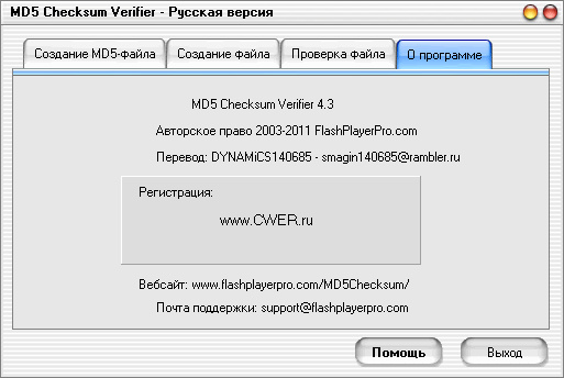 Скачать программу MD5 Checksum Verifier 4.3 Rus (0,5 МБ):