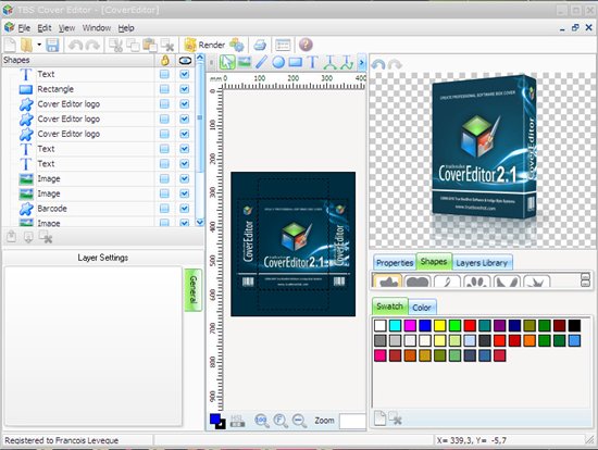 TBS Cover Editor - удивительная программа для создания и редактирования зримых виртуальных обложек коробок для ваших представляемых продуктов. Основная отличительная особенность TBS Cover Editor от других подобных программ, заключается в том, что коробка во время редактирования представлена как развёртка всех сторон одновременно с отображением ее готового трехмерного вида мгновенно меняющегося согласно вашего редактирования. Ещё одно не мало важное достоинство редактора - это базово заложенный богатый набор шаблонов вида коробок. Помощник программы после выбора вами понравившегося шаблона и ввода имени продукта и фирмы, поведет вас за руку до конечного результата - готовой коробки.