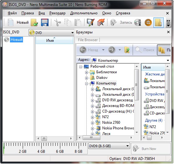Прожиг с помощью Nero Burning ROM: