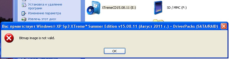 Что значит при загрузке уже якобы установочного диска с системой вылезающая табличка с надписью "Bitmap image is not valid."??? Что это такое и как с ним бороться??? Есть кто шарящий??? И РЕАЛЬНО могущий "на пальцах объяснить" КАК???