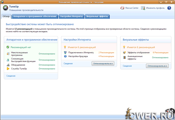 TuneUp Utilities были полностью обновлены: новое Главное окно является еще более легким для использования и обеспечивает еще более быстрый доступ к каждой функции.