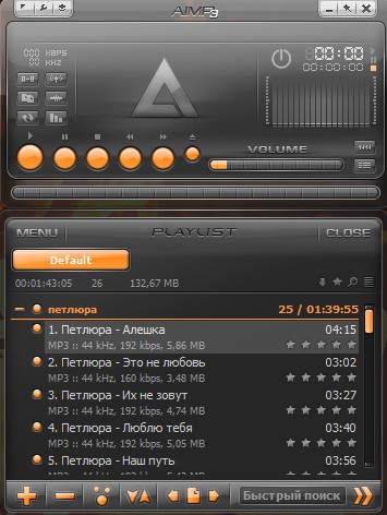 AIMP - программа, которая разрабатывалась как аналог всем известного медиаплеера Winamp. На данный момент программа включает в себя множество дополнительных модулей: CD-Ripper, Tag Editor, Audio-player, аудио конвертер, запись аудио и дисков с данными и многое другое. AIMP заменяет множество программ, благодаря чему теперь не нужно искать специальный софт, скажем, для перегона Audio-CD в MP3 - это уже предусмотрено в AIMP. Программа позволяет воспроизводить без плагинов множество форматов, включая WAV, MP3, MP2, MP1, OGG, WMA, UMX и многие другие. Интерфейс программы выглядит очень стильно, а также имеет многоязычную поддержку, включая русский язык.