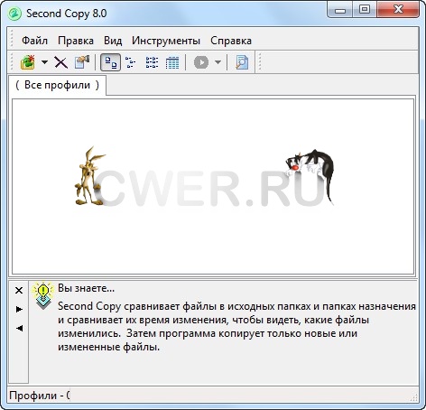 Second Copy позволяет создавать «вторые копии» важных пользовательских файлов или, говоря иначе, осуществляет резервное копирование. Программа допускает создание нескольких профилей/задач, а также автоматизацию их запуска с помощью планировщика.
