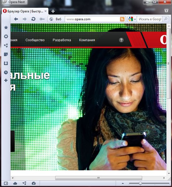 Opera – один из самых быстрых и гибких в настройке браузеров. Используя скины, пользовательские панели и другие средства настройки интерфейса, его внешний вид можно изменять до неузнаваемости. Программа позволяет "на лету" отключать и включать графику, а также может похвастаться фирменной технологией масштабирования веб-страниц, благодаря которой пользователи браузера практически никогда не видят горизонтальной прокрутки.