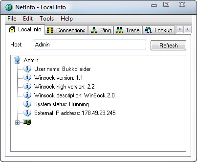 Netinfo - комплект программ, предназначенный для получения данных о состоянии локальной сети и отдельном персональном компьютере в сети. Netinfo выдаст подробный отчет, в котором отображены процессы, создающие сетевые подключения, и серверы, к которым они производят подключение. Также утилита выполнит пинг или трассировку до любого хоста и выдаст информацию о владельце того или иного сайта при помощи whois.