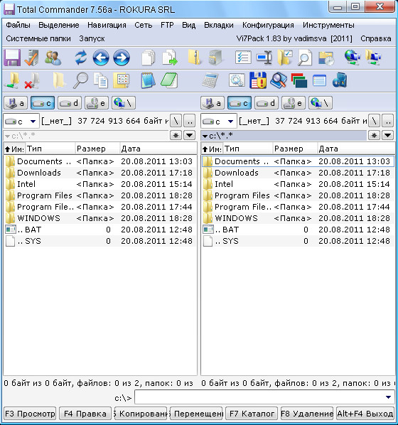 Скачать программу Total Commander 7.56a Vi7Pack v 1.83 Beta 2 (8,5 МБ):