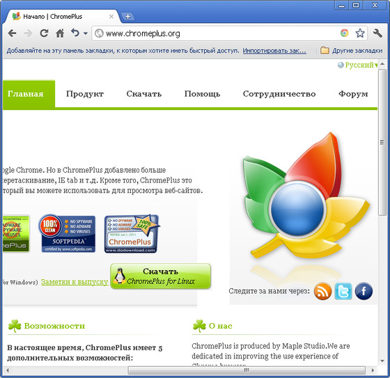 Скачать программу ChromePlus 1.6.3.0 Alpha 4 (22,4 МБ):