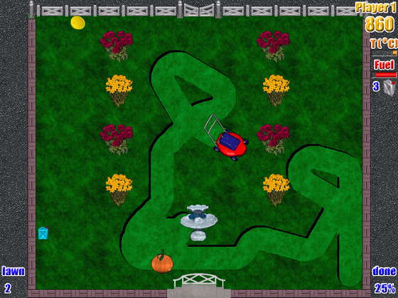 LawnMower - уникальная аркада, сочетание таких игр, как Xonix, Snake и Pacman. Вы - домовладелец и управляете 2-х скоростной газонокосилкой. Стригите траву, собирайте различные бонусы и остерегайтесь врагов, которые будут воровать ваше топливо.