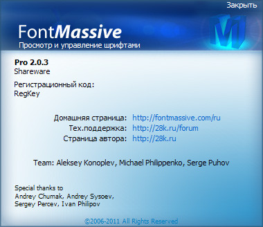 Скачать программу FontMassive Pro 2.03 (3,54 МБ):