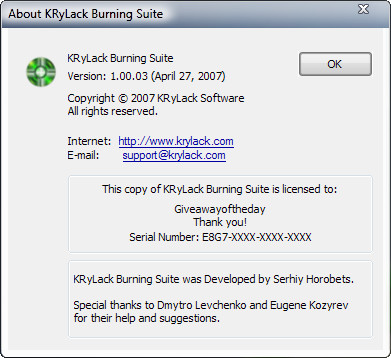 Скачать программу KRyLack Burning Suite 1.00.03 (9,22 МБ):