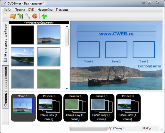 - предостовляет несколько заготовок для DVD меню v1.8.0